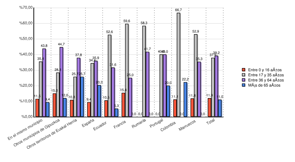 | Otros territorios de Euskal Herria | 3 | 4,1 | 0 | 0,0 | 11 | 14,9 | 14 | 18,9 | 38 | 51,4 | 8 | 10,8 | 74 | 100,0 |