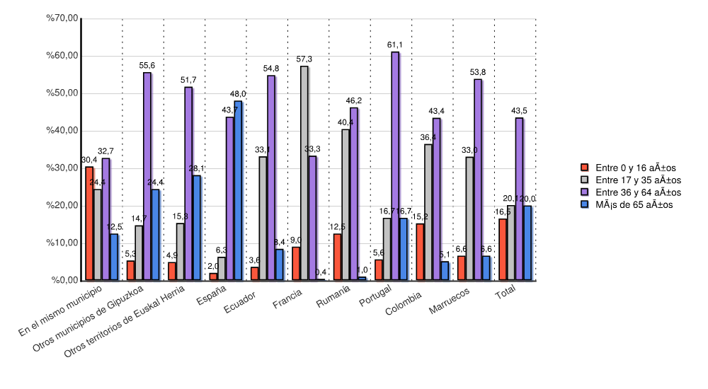 | Otros municipios de Gipuzkoa | 2 | 0,0 | 0 | 0,0 | 0 | 0,0 | 0 | 0,0 | 3.053 | 39,6 | 2.012 | 26,1 | 1.516 | 19,7 | 1.124 | 14,6 | 7.707 | 100,0 |