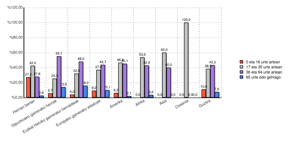 | Herrian bertan | 0 | 0,0 | - | - | - | - | - | - | 73 | 48,3 | 12 | 7,9 | 27 | 17,9 | 39 | 25,8 | 151 | 100,0 |