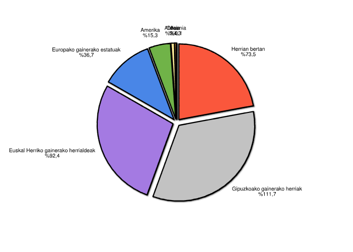 | Euskal Herriko gainerako herrialdeak | 6.377 | 92,4 |