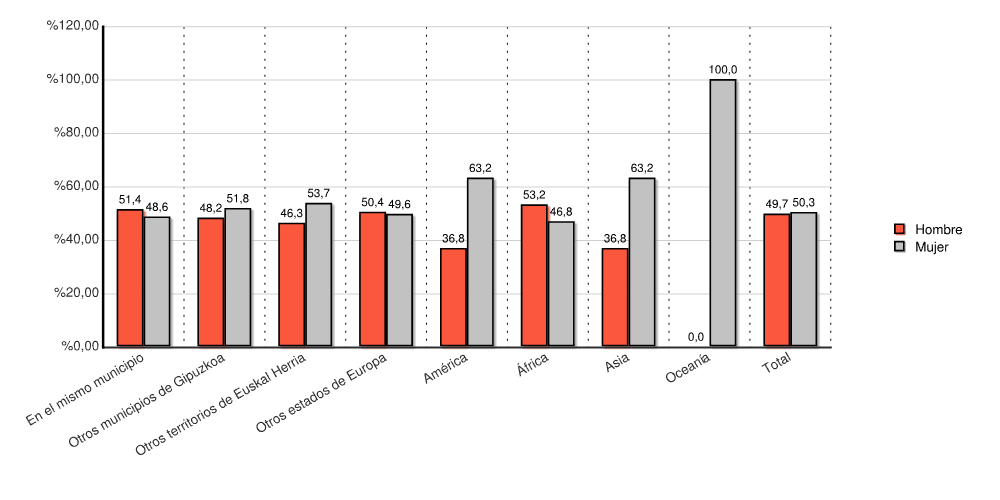 | Otros municipios de Gipuzkoa | 1.316 | 48,2 | 1.415 | 51,8 | 2.731 | 100,0 |