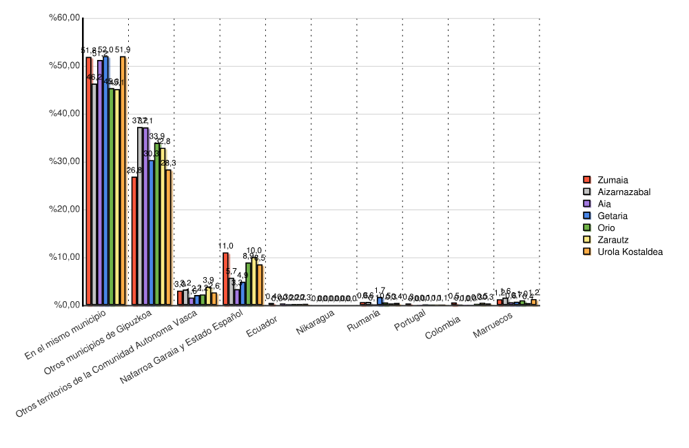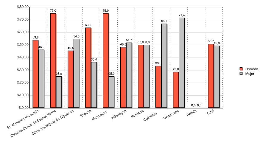 | Otros municipios de Gipuzkoa | 1.316 | 48,2 | 1.415 | 51,8 | 2.731 | 100,0 |