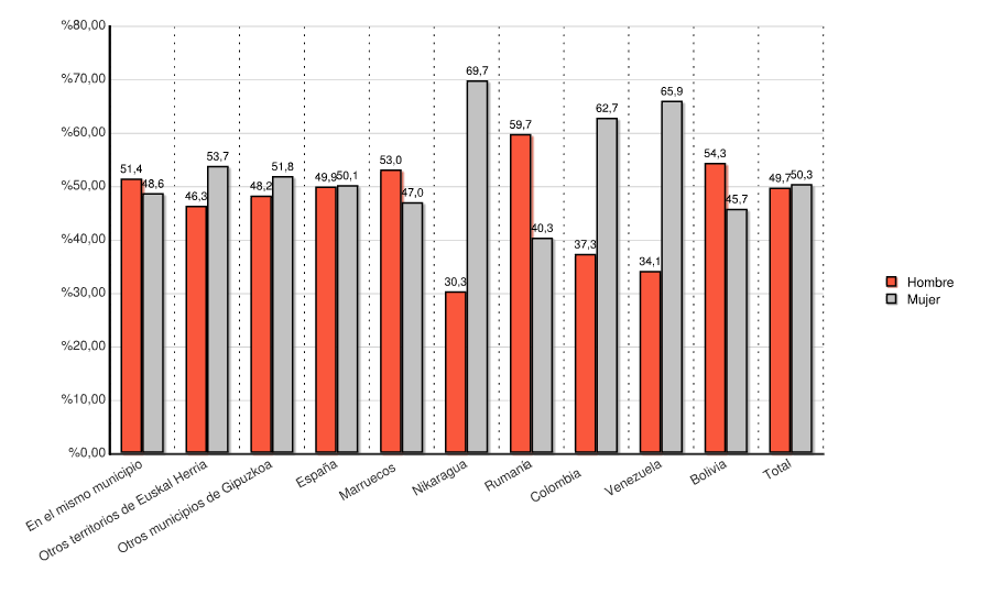 | Otros municipios de Gipuzkoa | 1.316 | 48,2 | 1.415 | 51,8 | 2.731 | 100,0 |