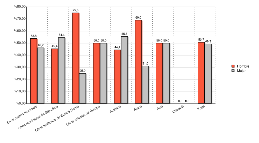 | Otros municipios de Gipuzkoa | 44 | 45,4 | 53 | 54,6 | 97 | 100,0 |