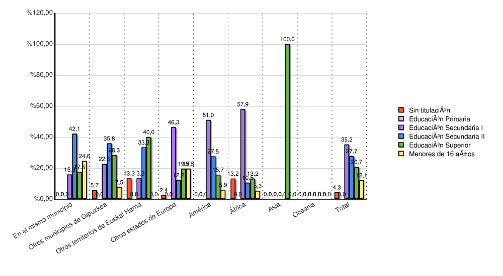 3.2.2.5 Grafikoa: Jatorria Kontinente eta Ikasketa Mailaren arabera