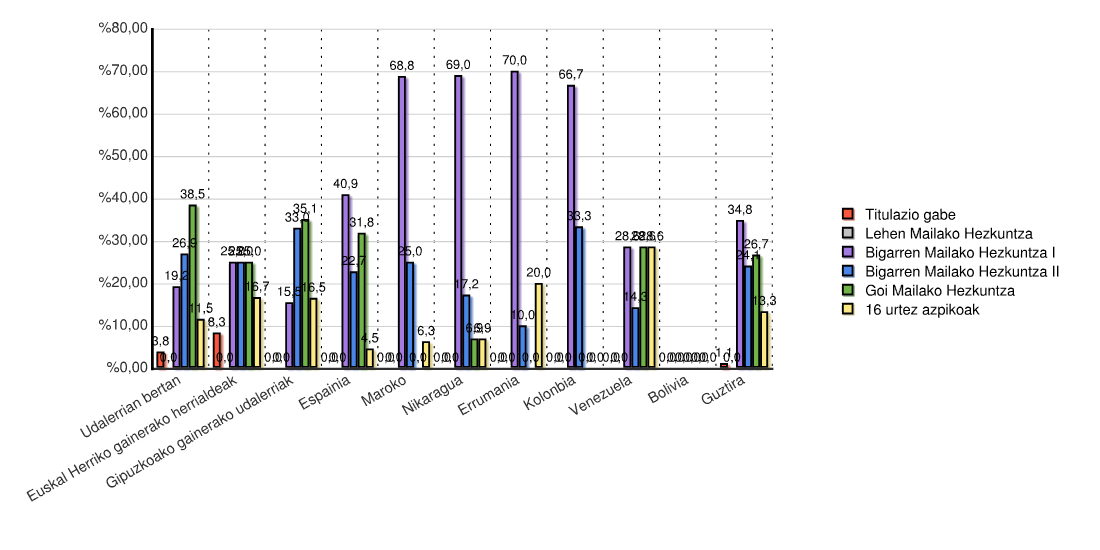 | Estatua | Titulazio gabe | Lehen Mailako Hezkuntza | Bigarren Mailako Hezkuntza I | Bigarren Mailako Hezkuntza II | Goi Mailako Hezkuntza | 16 urtez azpikoak | Guztira | |||||||