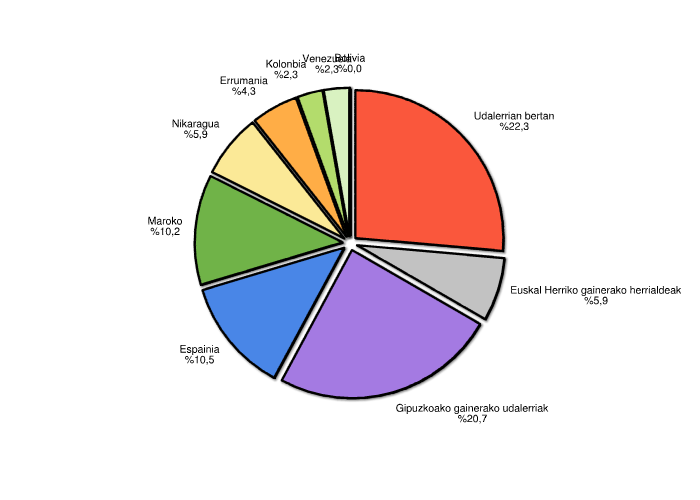 | Udalerrian bertan | 57 | 22,3 |
